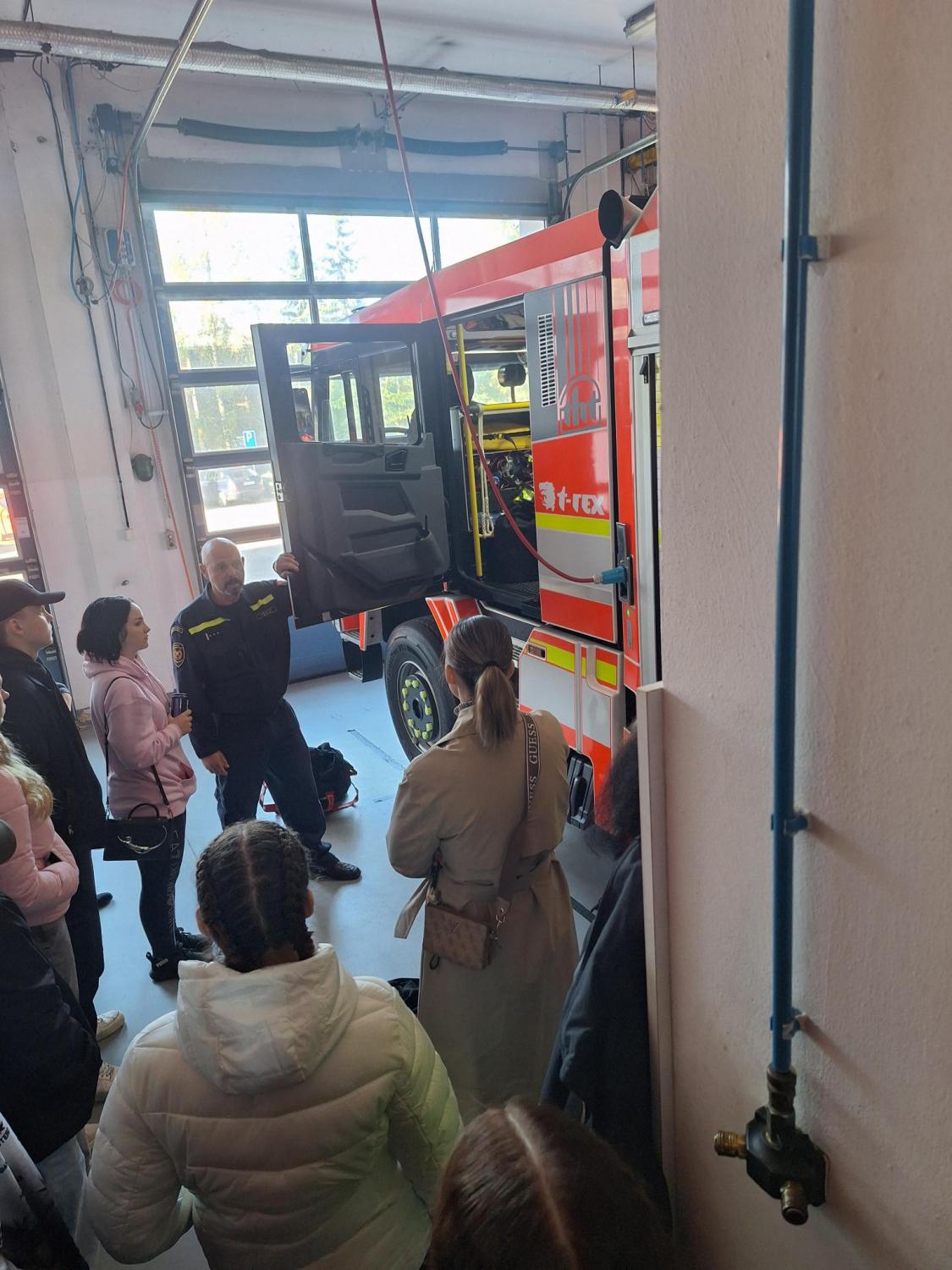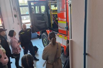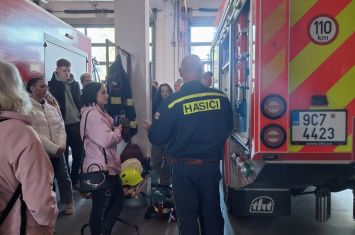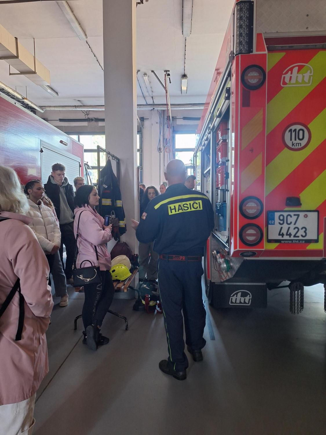 Žáci byli rovněž pozváni do garáží HZS, kde jim byl podrobně představen vozový park s výkladem jednotlivých funkcí a využití techniky. Měli možnost nahlédnout do zásahových vozidel, seznámili se s vybavením pro hašení požárů, záchranné a vyprošťovací práce, dopravní nehody i ekologické zásahy. Příslušník HZS jim ukázal moderní techniku, kterou využívají při mimořádných událostech, a vysvětlil postupy nasazení jednotlivých vozidel při různých typech zásahů. Pro žáky byla tato část exkurze velmi atraktivní, neboť si mohli zblízka prohlédnout vybavení, které běžně vídají pouze při zásazích v médiích.