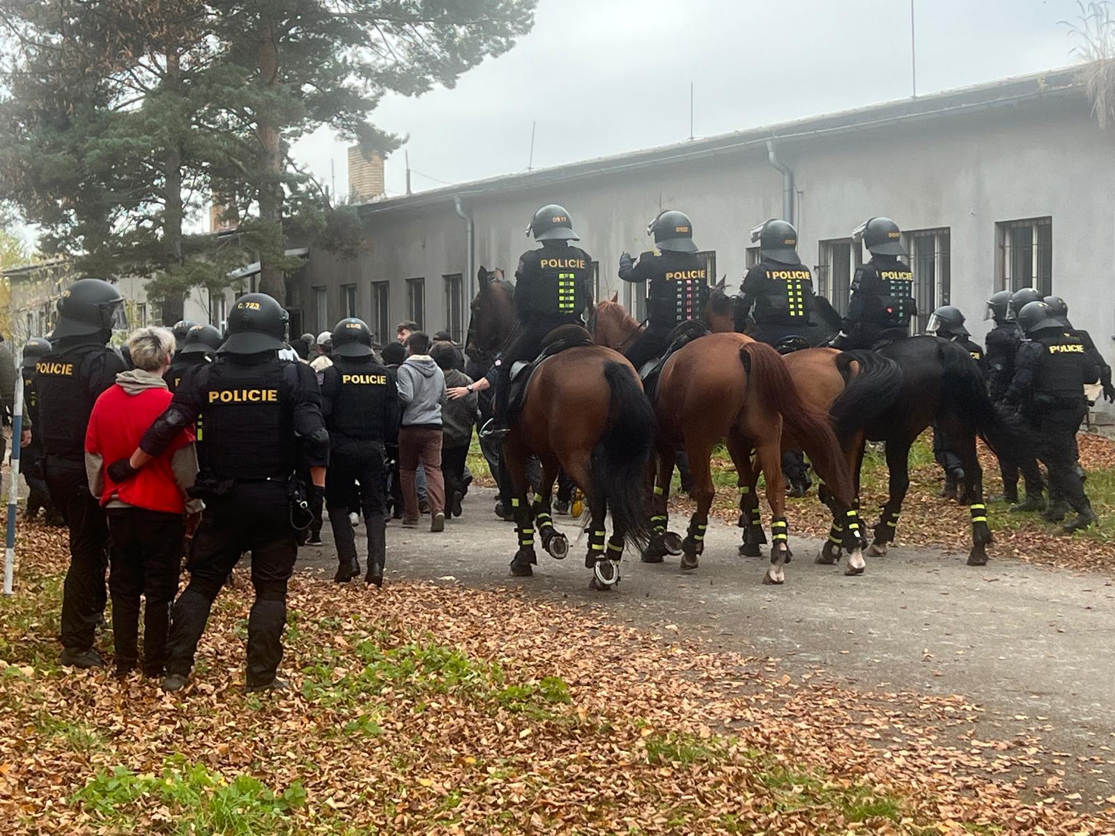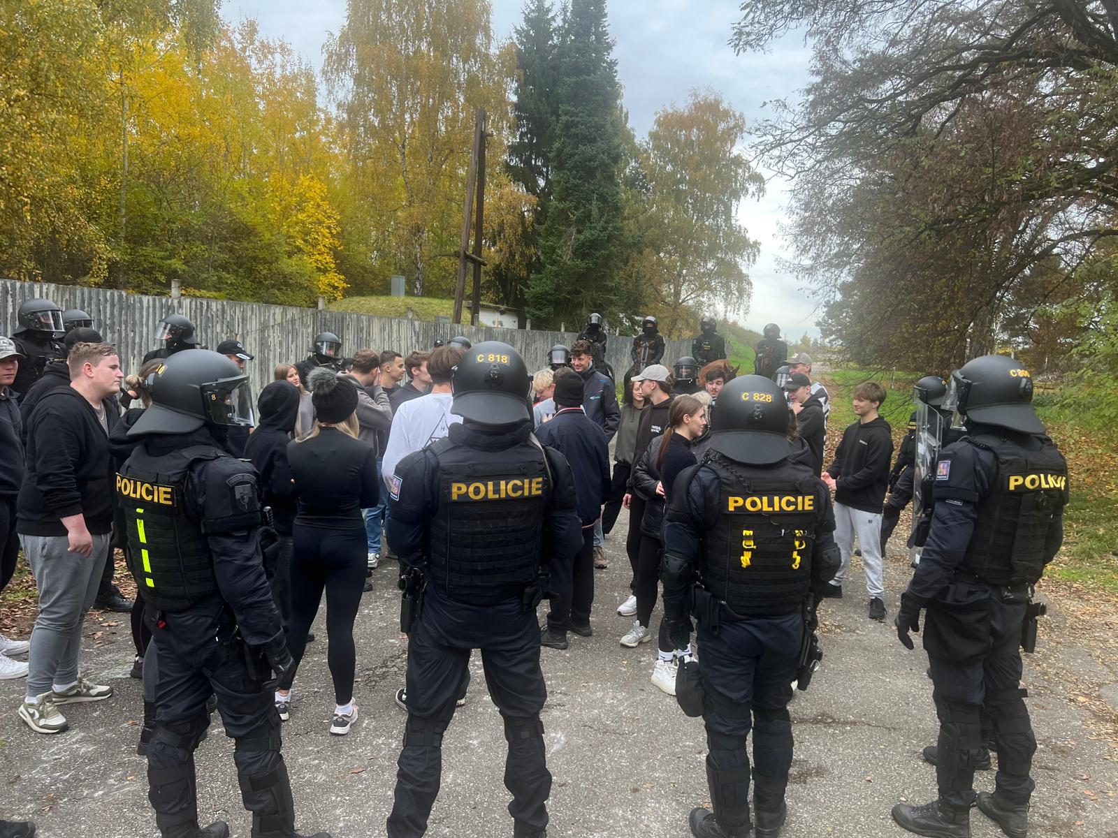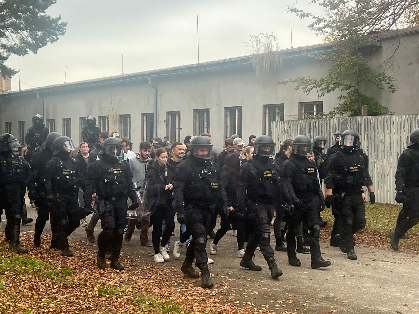 V rámci výuky nástavbového studia Bezpečnostní služby se žáci tříd BS1 a BS2 zúčastnili nácviku Pořádkové jednotky Krajského ředitelství policie Jihočeského kraje, který probíhal za účasti příslušníků Hipologického oddělení Policie České republiky z Prahy.
