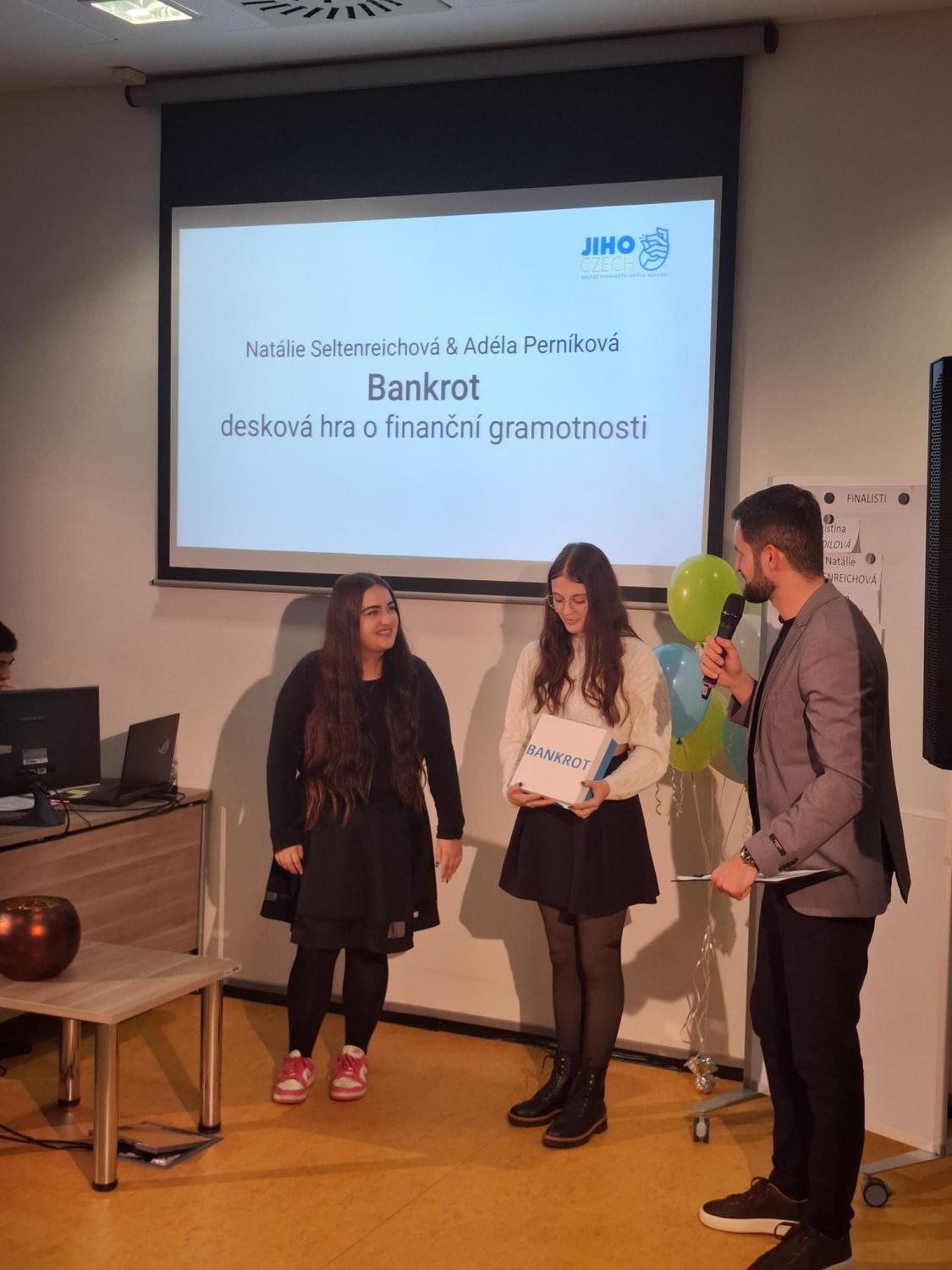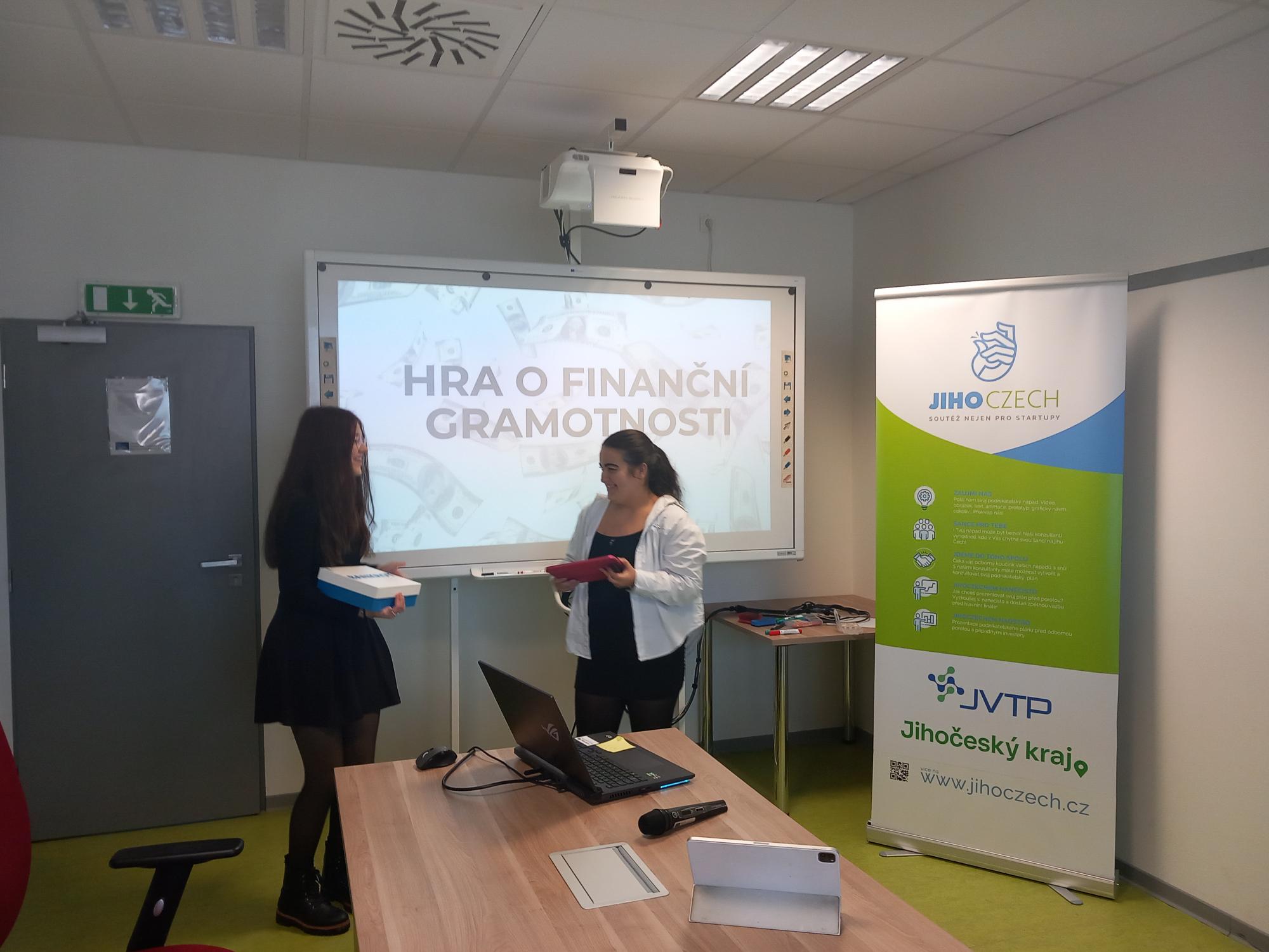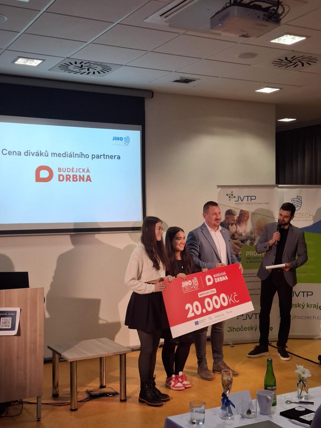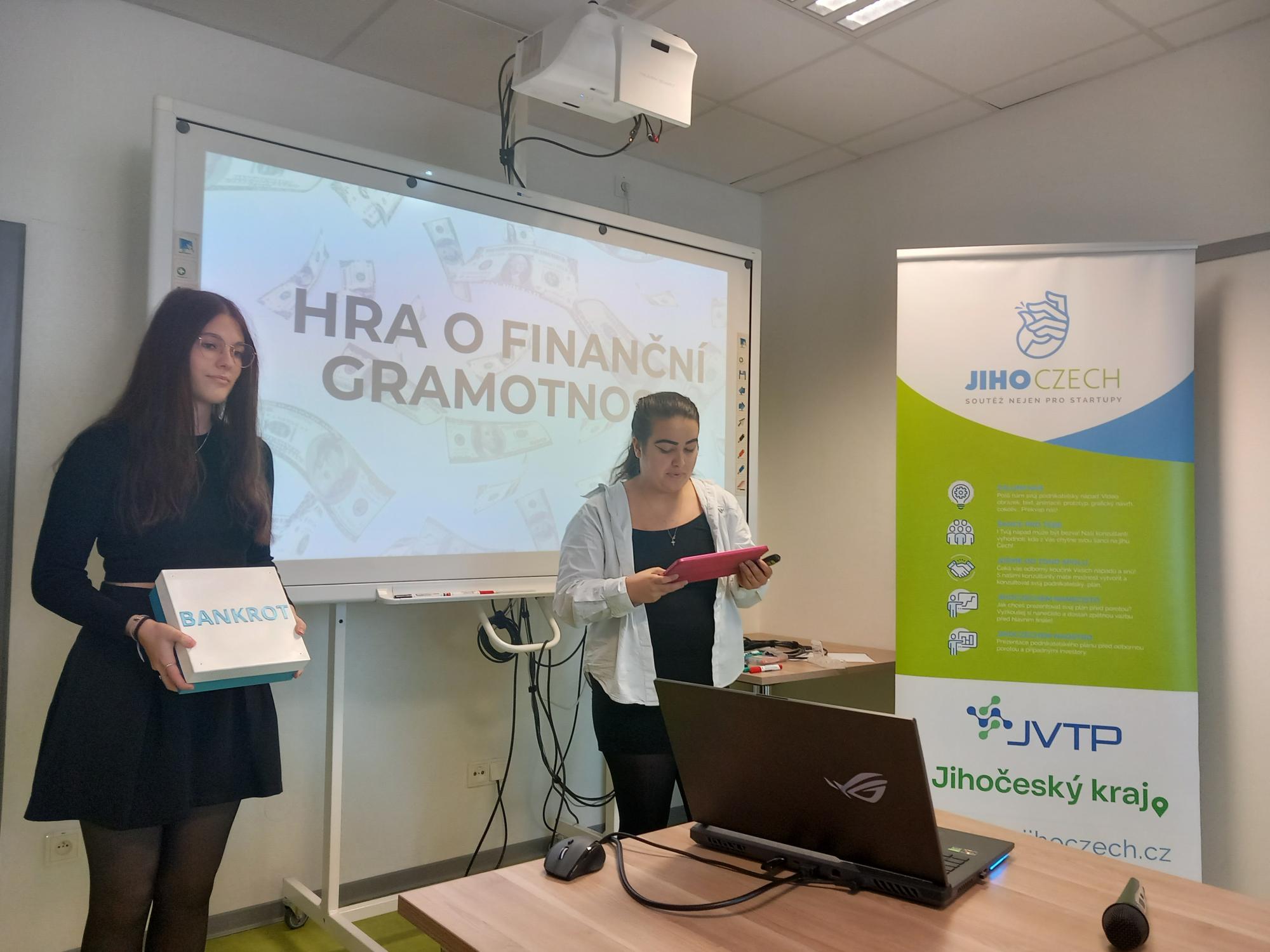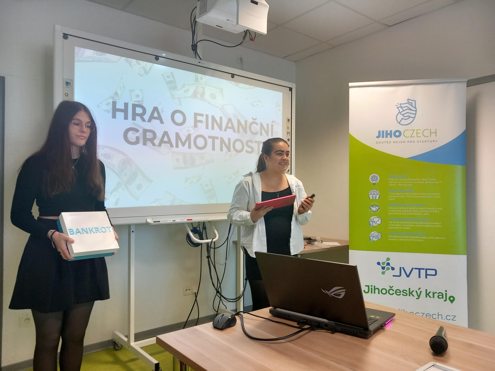 Ve čtvrtek 27. 11. 2025 proběhlo finále, ve kterém naše podnikatelky vyhrály 20 000 Kč na propagaci svého startupu v časopise Budějovická Drbna.