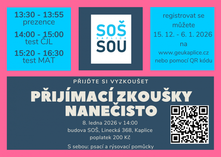 Přihlášení na přijímací zkoušky nanečisto 2026 – Vyplnit formulář