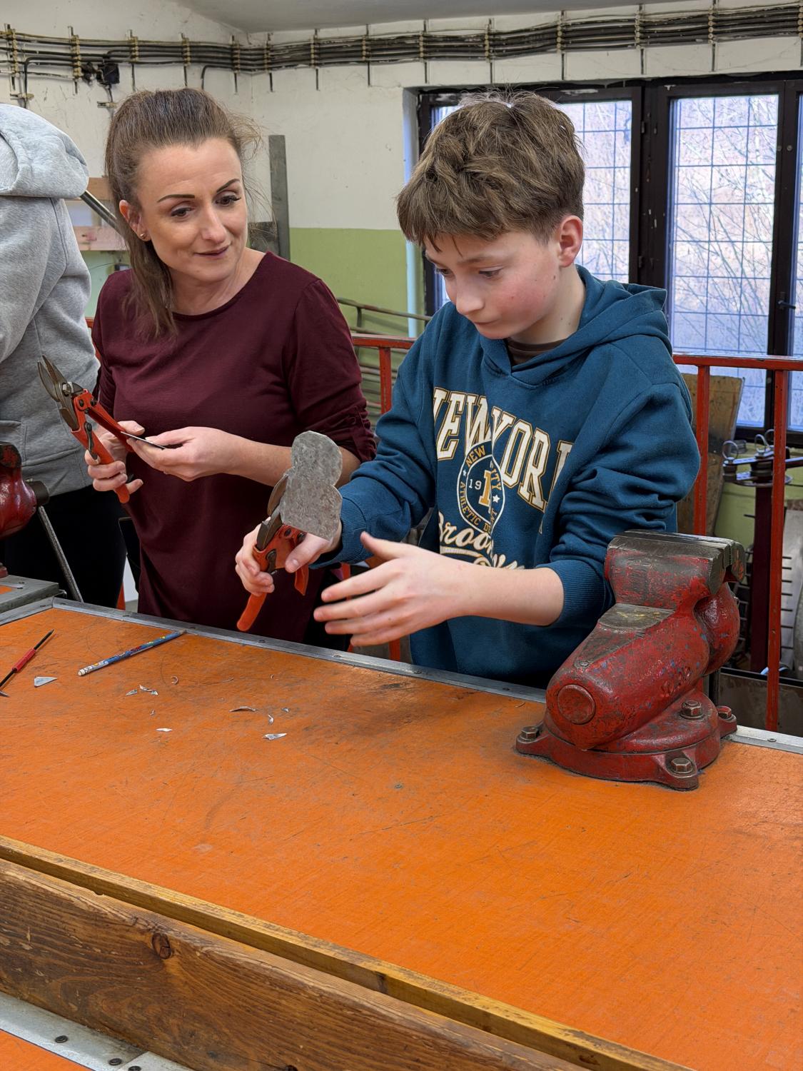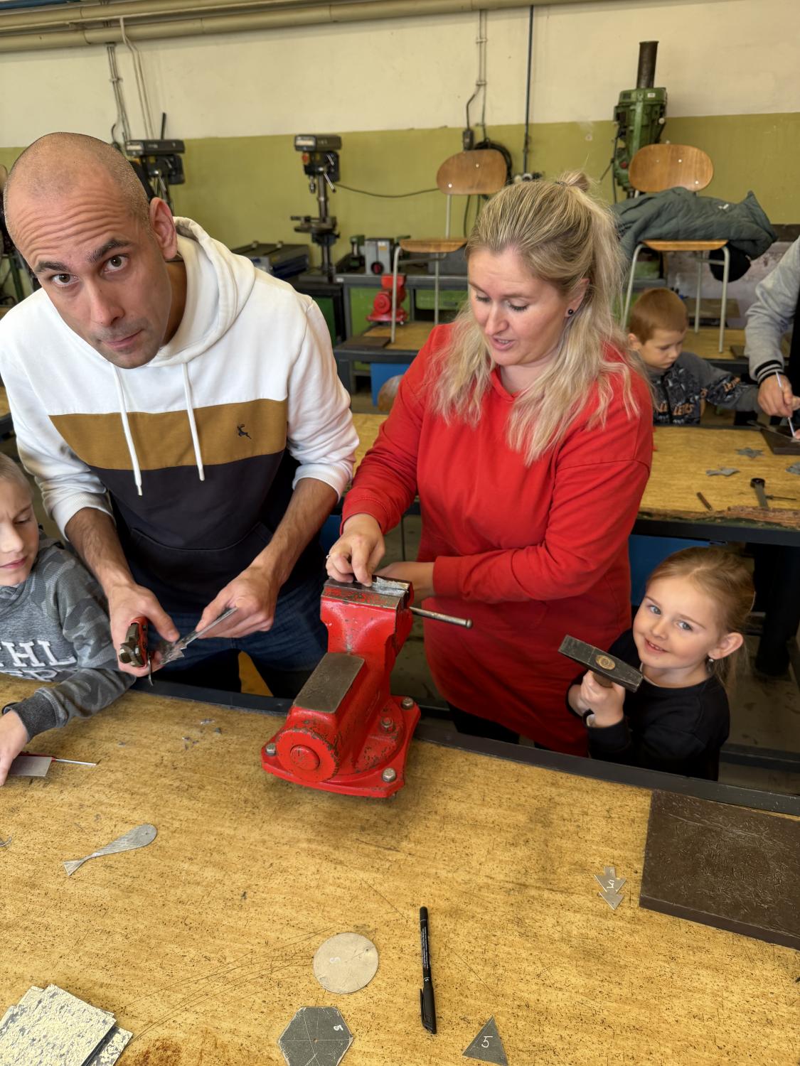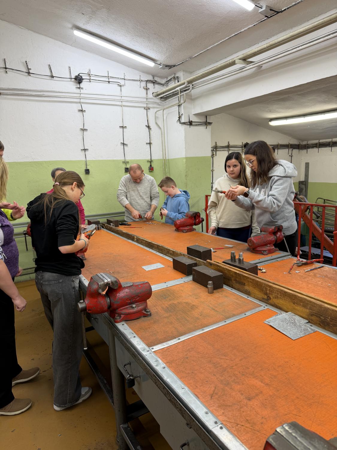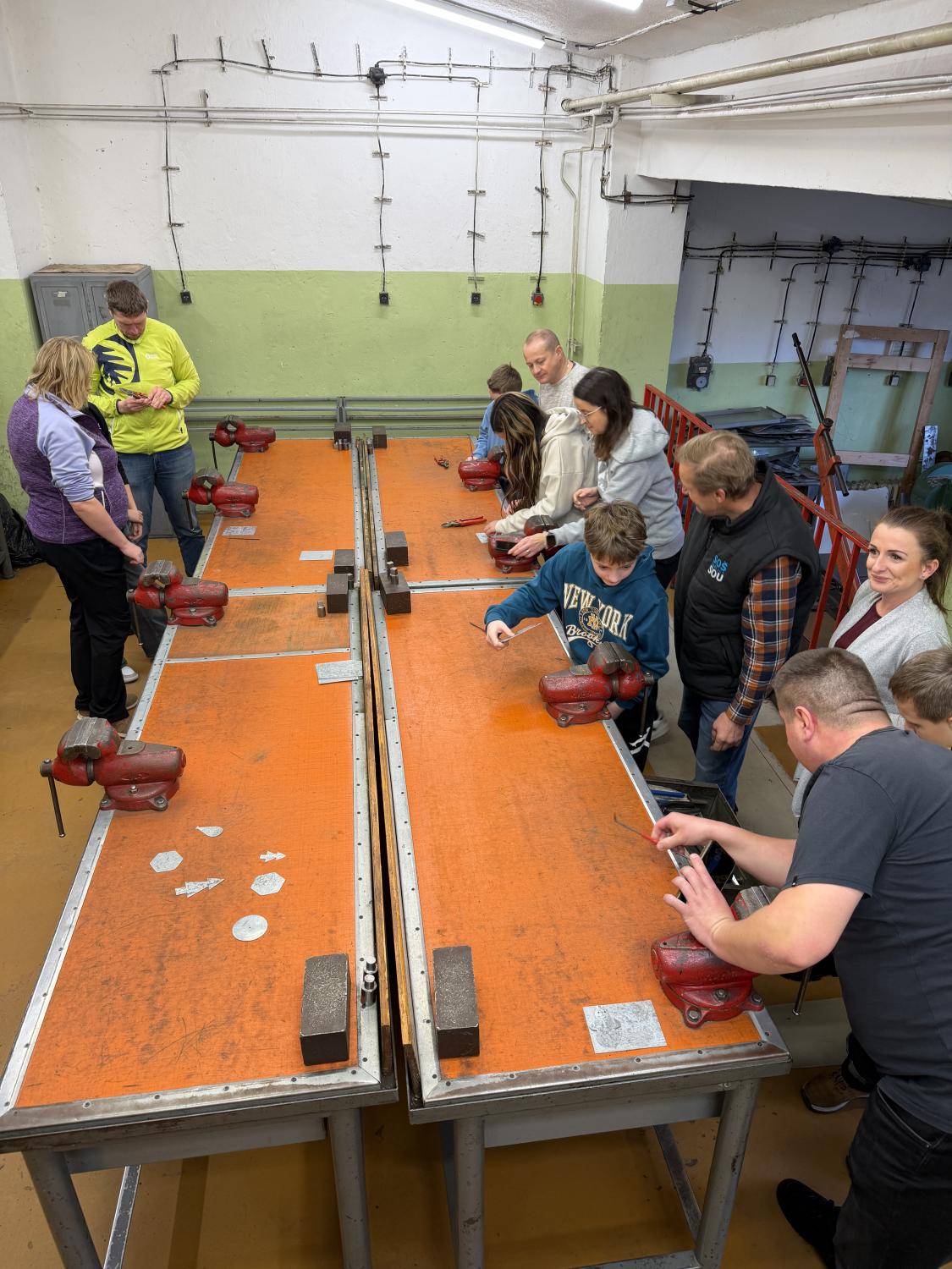 V soboru 13. 12. 2025 dopoledne proběhl na škole projekt pro rodiče s dětmi Hrdinové řemesel pod záštitou Jihočeské hospodářské komory. Nejprve si prohlédli naši školu, poté byla pro ně ve školních dílnách připravena aktivita - opracovávání kovu. Po zasloužené práci s nůžkami na plech, se svěrákem a brouskem byla připravena ve studiu nápojové gastronomie zasloužená svačina, kterou pro naše hosty připravili učitelé a žáci oboru Kuchař-číšník.