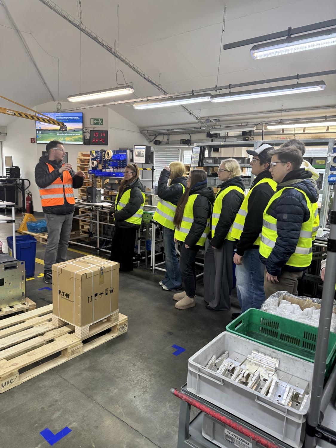 Dne 6. 1. 2026 se uskutečnila exkurze třídy Operátor skladování do výrobního závodu společnosti Eaton v Suchdole nad Lužnicí. I přesto, že doprava z Kaplice do Suchdola nad Lužnicí není zcela jednoduchá, podařilo se cestu úspěšně zvládnout kombinovanou dopravou a exkurze proběhla dle plánu.