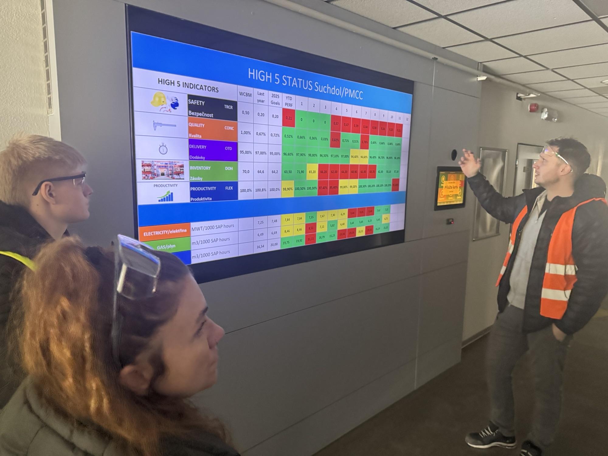 Po příjezdu do areálu závodu bylo pro žáky připraveno drobné občerstvení. Následně jim byl představen podnik z hlediska jeho historie, současného fungování, výrobního zaměření, technologických postupů a organizační struktury. Poté si žáci oblékli reflexní vesty, nasadili ochranné brýle a za doprovodu průvodce se vydali na prohlídku celého výrobního provozu. V průběhu exkurze měli možnost sledovat kompletní logistický proces, různé typy skladů, používané manipulační prostředky, ale také prvky automatizace a robotizace, které jsou v moderní logistice běžně využívány. Na závěr exkurze byl pro žáky připraven vědomostní kvíz, jehož výsledky potvrdily, že žáci výklad pozorně sledovali a aktivně vnímali poskytované informace.