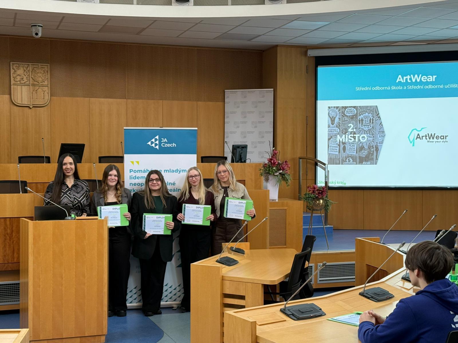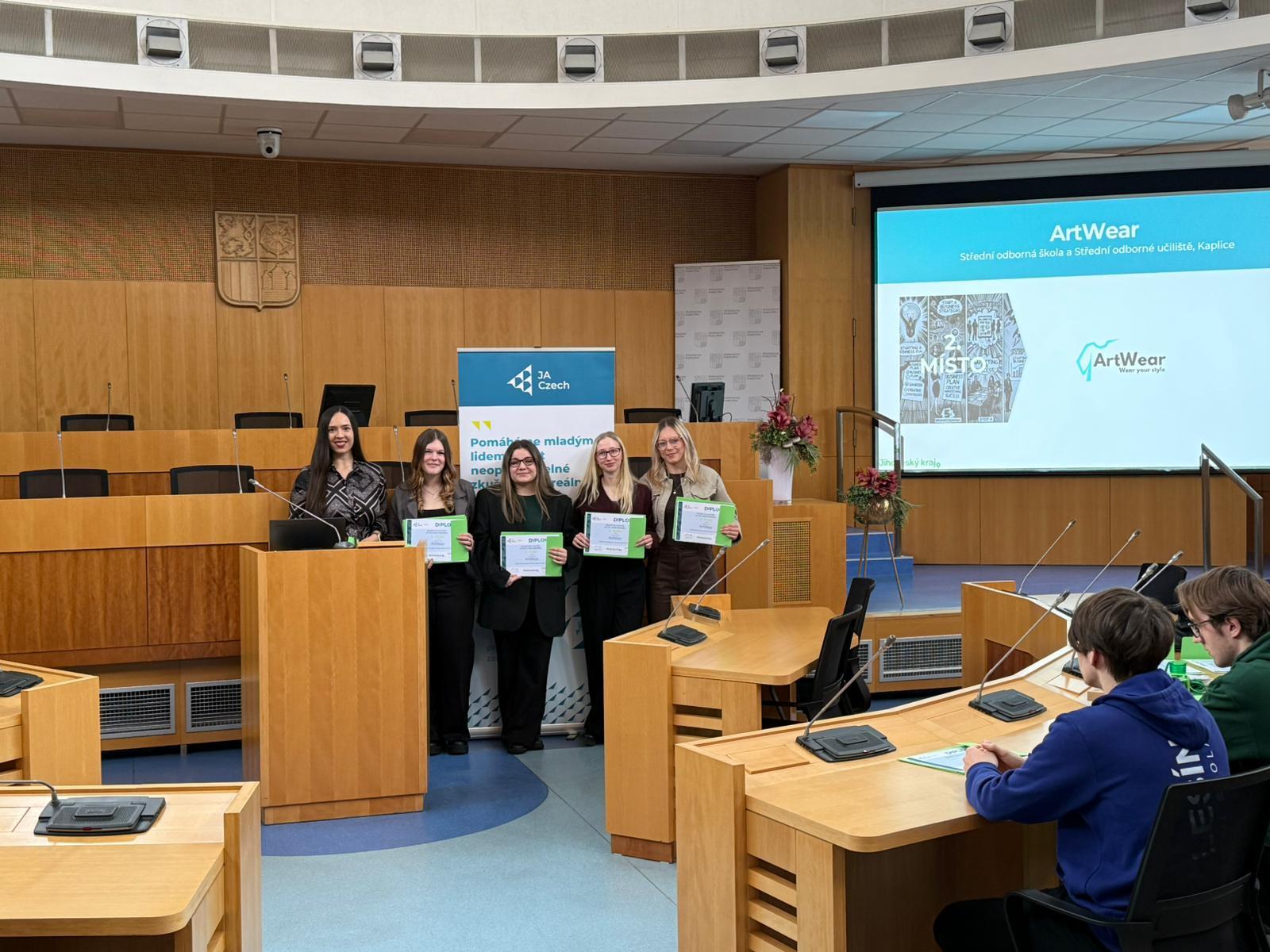Naše studentská firma ArtWear obsadila v této soutěži 2. místo v Jihočeském kraji. Moc gratulujeme a držíme palce, aby postoupila na EXPO veletrh do Prahy.