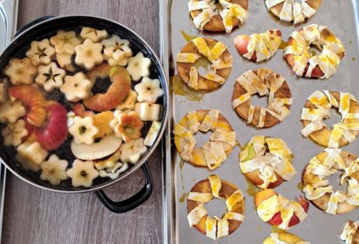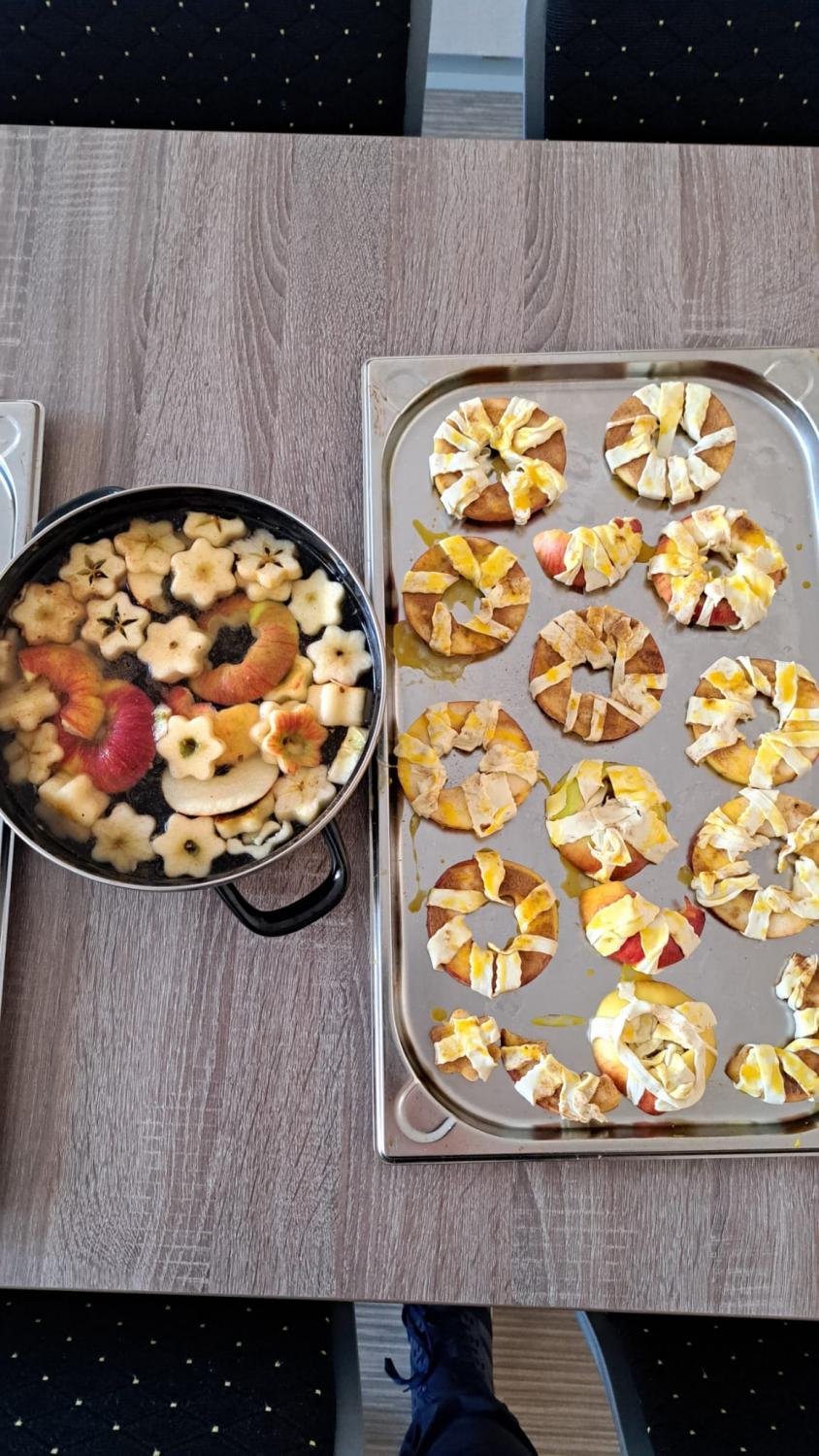 Kuřecí vývar / Jablečný závin / Kynuté švestkové koláče / Jablko-hruškový koláč / Jablka v listovém těstě / Slaní šneci