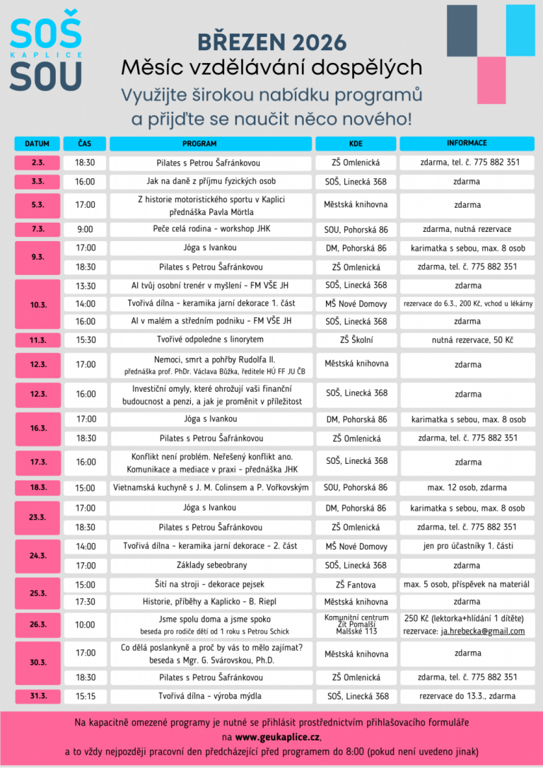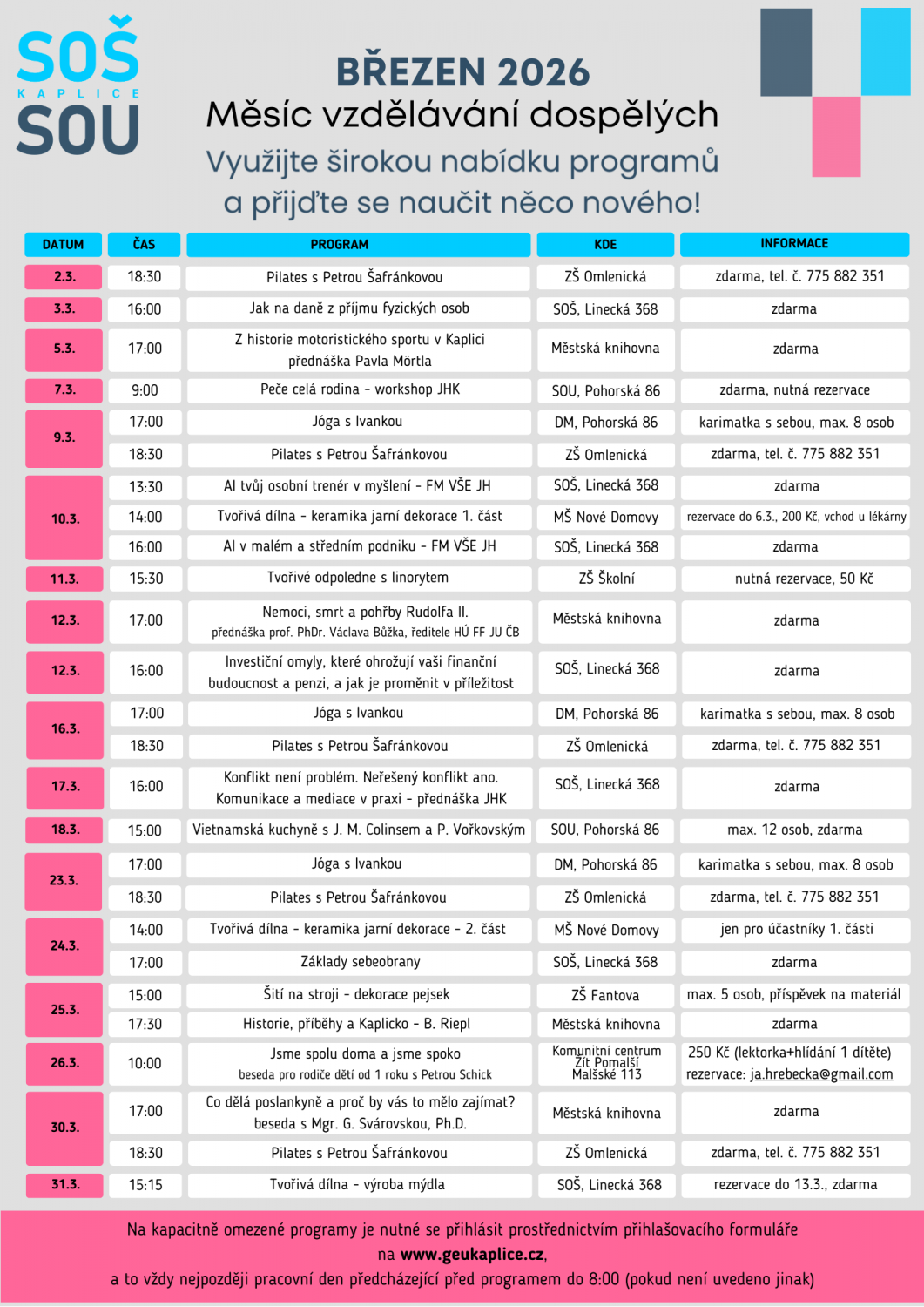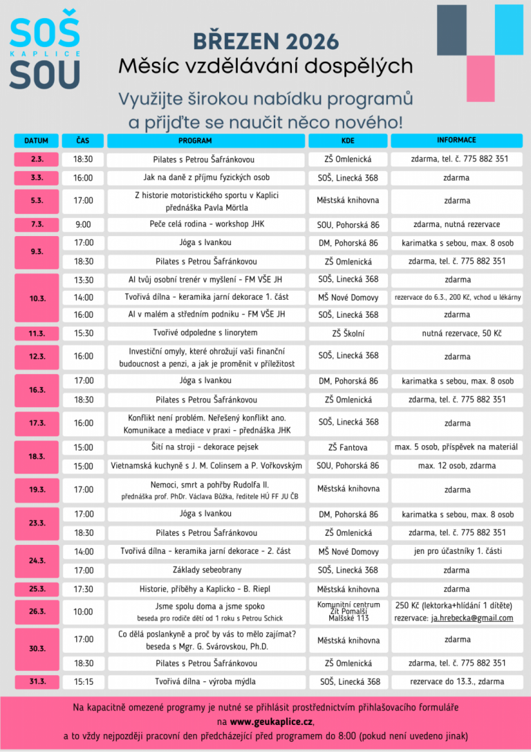 Přihlašování na kapacitně omezené aktivity začíná 1. března 2026